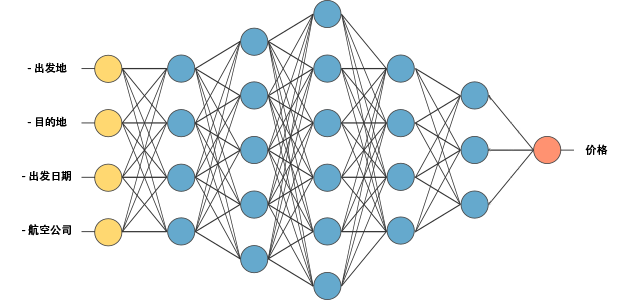 输出层负责返回数据,通过神经网络,我们就能预测出某个航班的价格。